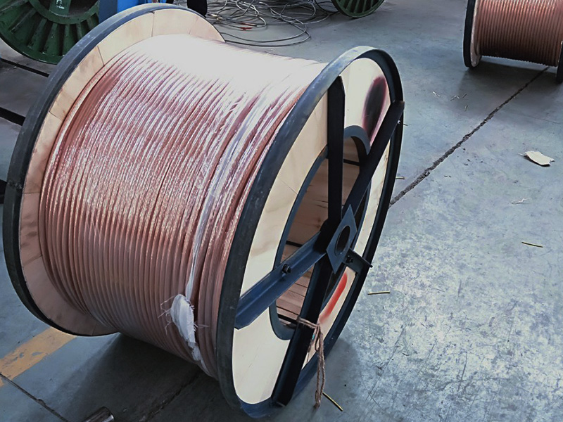 銅包鋼絞線由一定根數的銅包鋼單線絞制而成。是銅包著鋼絲,因此是鋼絲外圍包裹銅層的復合線材,它利用低壓高頻信號的趨膚效應,在高頻區沿表面行走,所以只要銅層厚度達到一定范圍,某個頻率段的信號就能被確保傳遞。銅起到傳導弱電信號的作用,鋼絲則起到支撐作用。依據銅包裹到鋼絲的不同方法,主要分為電鍍、包覆、熱鑄/浸以及電鑄。該產品既有鋼的強度和韌性,又有銅的良好導電性和耐腐蝕性能。相比銅單線具有密度小,強度高,造價低等優點,是傳統純銅單線的更新換代產品。